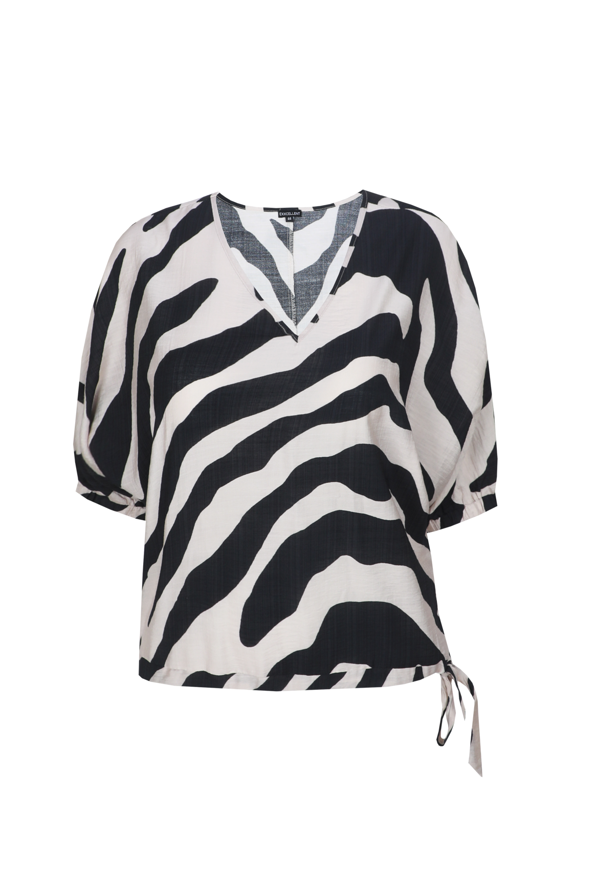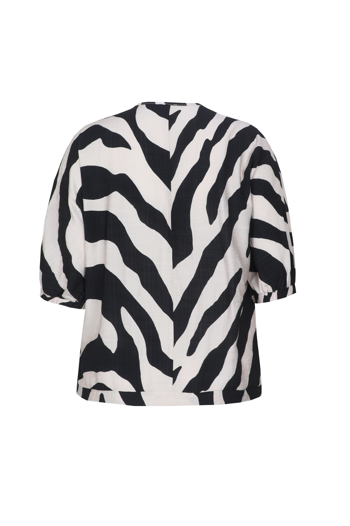Een krachtige eyecatcher met een speelse en vrouwelijke uitstraling. De Aubriana top heeft een losvallende pasvorm met een flatterende V-hals en halflange mouwen met elastische afwerking voor extra comfort. De opvallende zebra print en de subtiele structuur in de stof geven het item een trendy en eigentijdse touch.