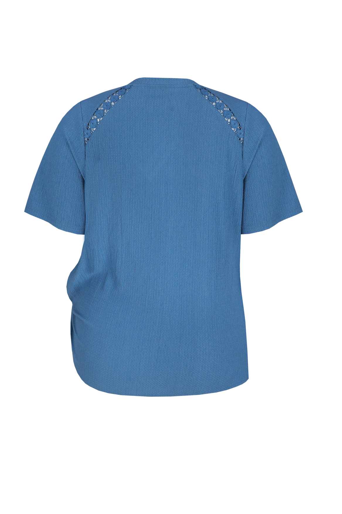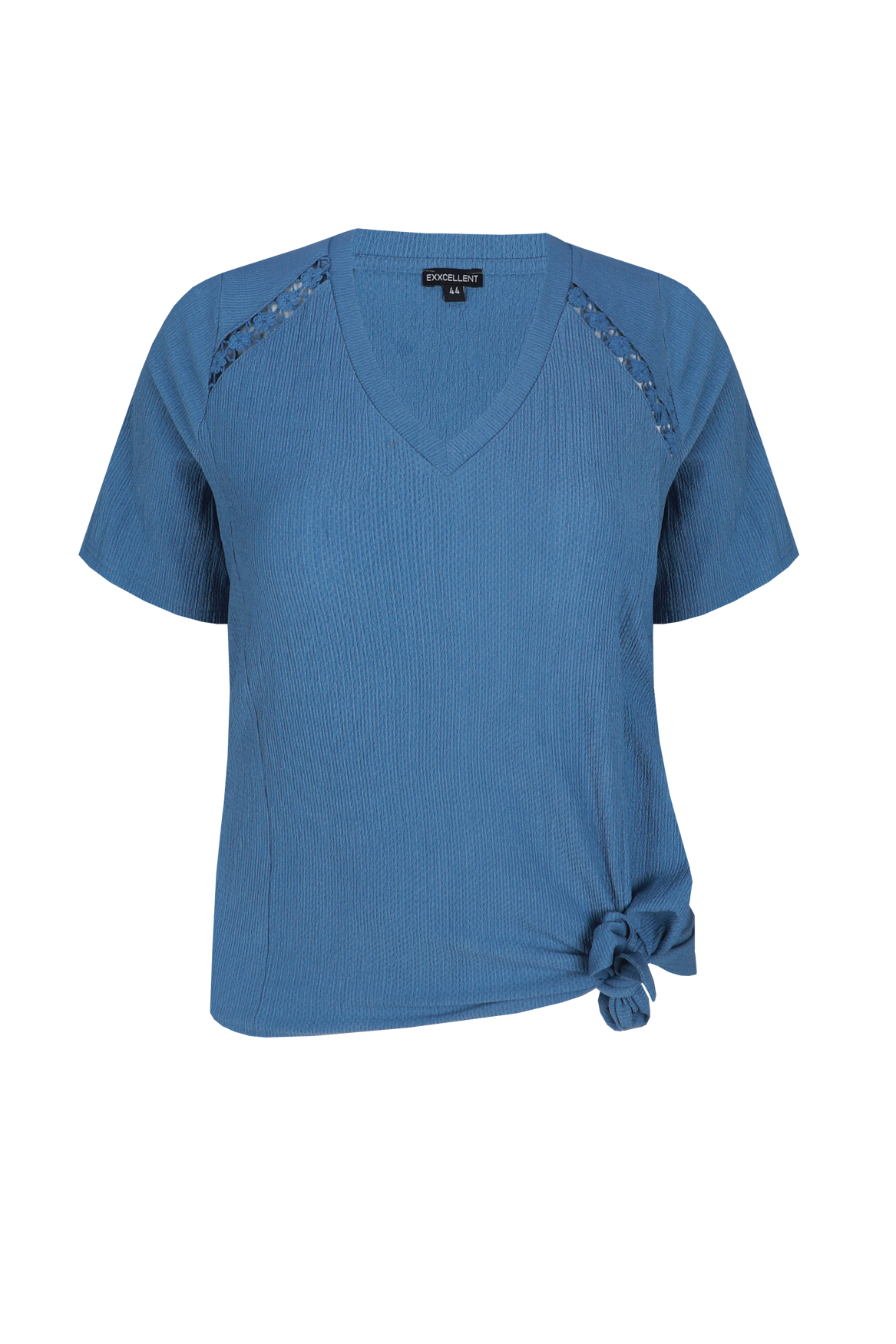 Een moderne essential met een zachte en vrouwelijke uitstraling. De Jaya top heeft een losvallende pasvorm met een flatterende V-hals en korte mouwen, uitgevoerd in een comfortabele, licht gestructureerde kwaliteit die soepel valt. De verfijnde kanten inzet op de schouders en het strikdetail aan de zijkant geven het ontwerp een speelse en elegante touch.