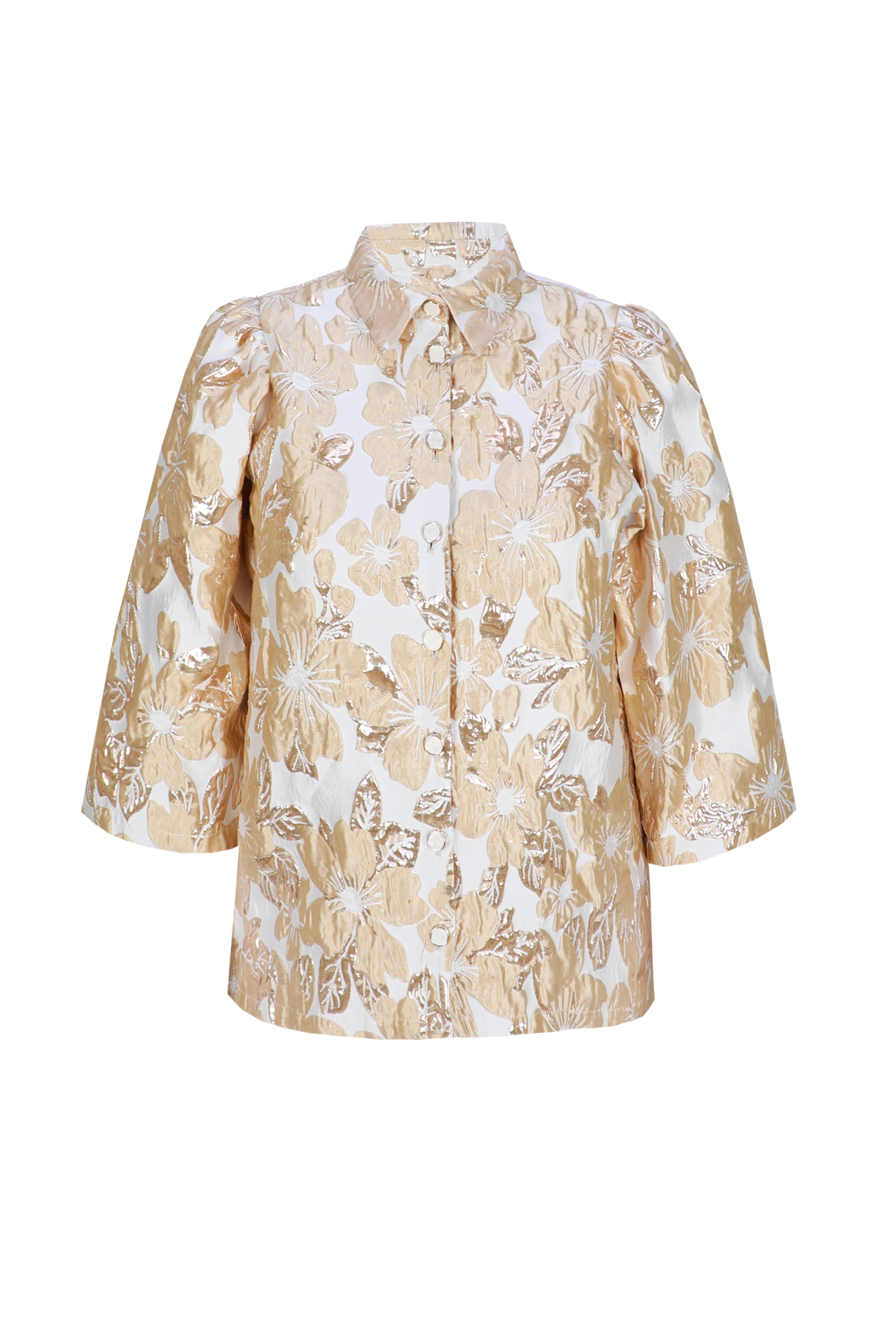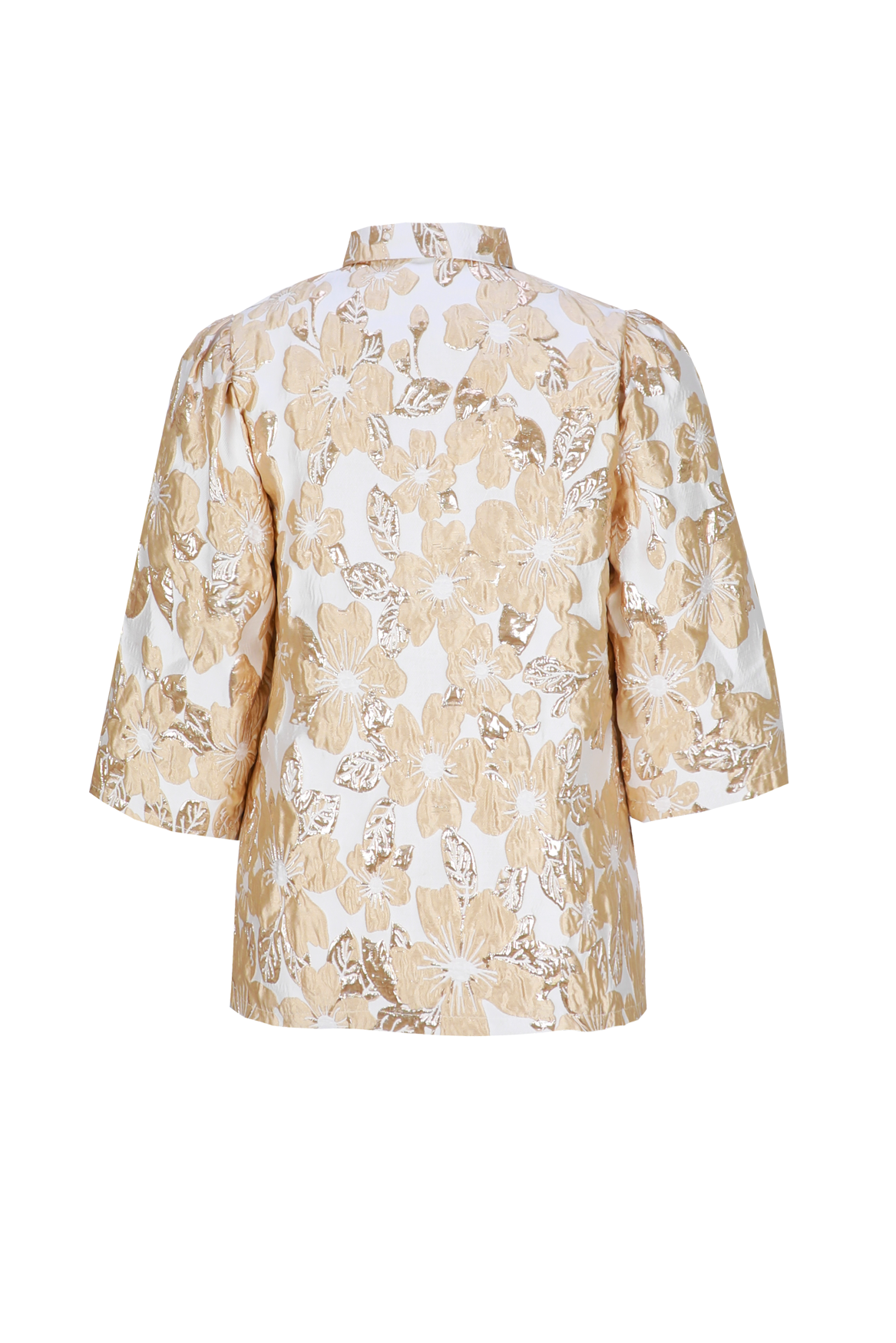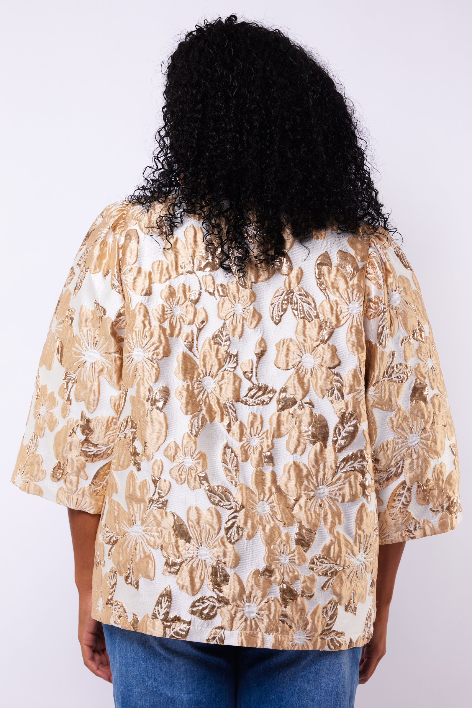 De Kiranne jacket is uitgevoerd in een rijke jacquardstof met glanzend bloemmotief. De rechte snit en driekwartmouwen zorgen voor een elegante look met een moderne twist. Perfect te combineren voor zowel een chique gelegenheid als een stijlvolle everyday look.