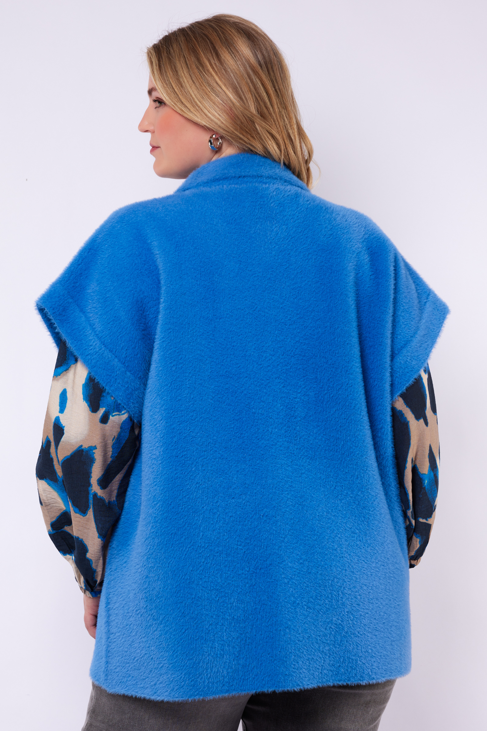 Een moderne laagjesfavoriet met een zachte touch. Het Laurena gilet heeft een comfortabele, teddyachtige structuur en korte mouwen voor een eigentijdse look. De kraag en knoopsluiting geven het item een stoere, maar vrouwelijke uitstraling, perfect om eindeloos te combineren.