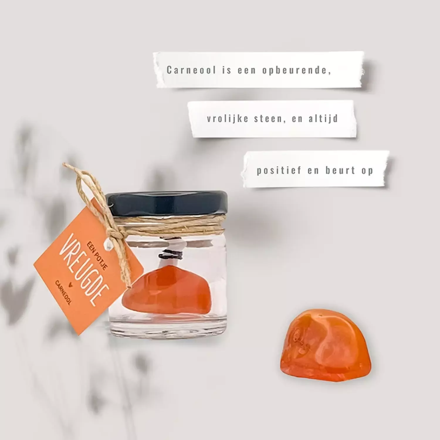 [sk_markdown]Toffe edelsteen cadeautjes in klein glazen potje. Aan het potje hangt een mooi kaartje met op de achterkant een korte uitleg over de edelsteen. In het potje zit een briefje met uitgebreidere beschrijving over de edelsteen. Ideaal om iemand een hart onder de riem te steken, te bedanken, of ter ondersteuning. Voor iedereen is er wel een edelsteen die precies past!