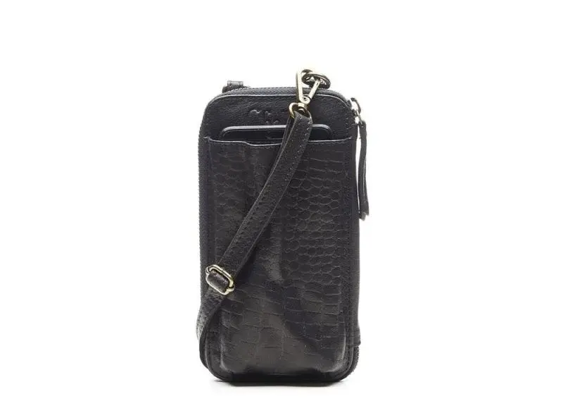 Aan de voorzijde van het tasje zit een insteekvak met croco print waar perfect je telefoon in past.