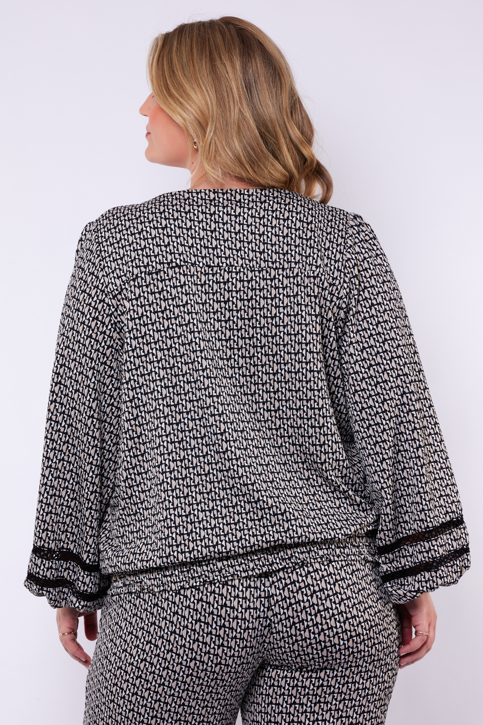De Samara top is uitgevoerd in een fijne print en afgewerkt met elegante open details op de mouwen. Dankzij de V-hals, lange mouwen en elastische zoom heeft deze top een comfortabele en flatterende fit. Een veelzijdig item voor elke gelegenheid.