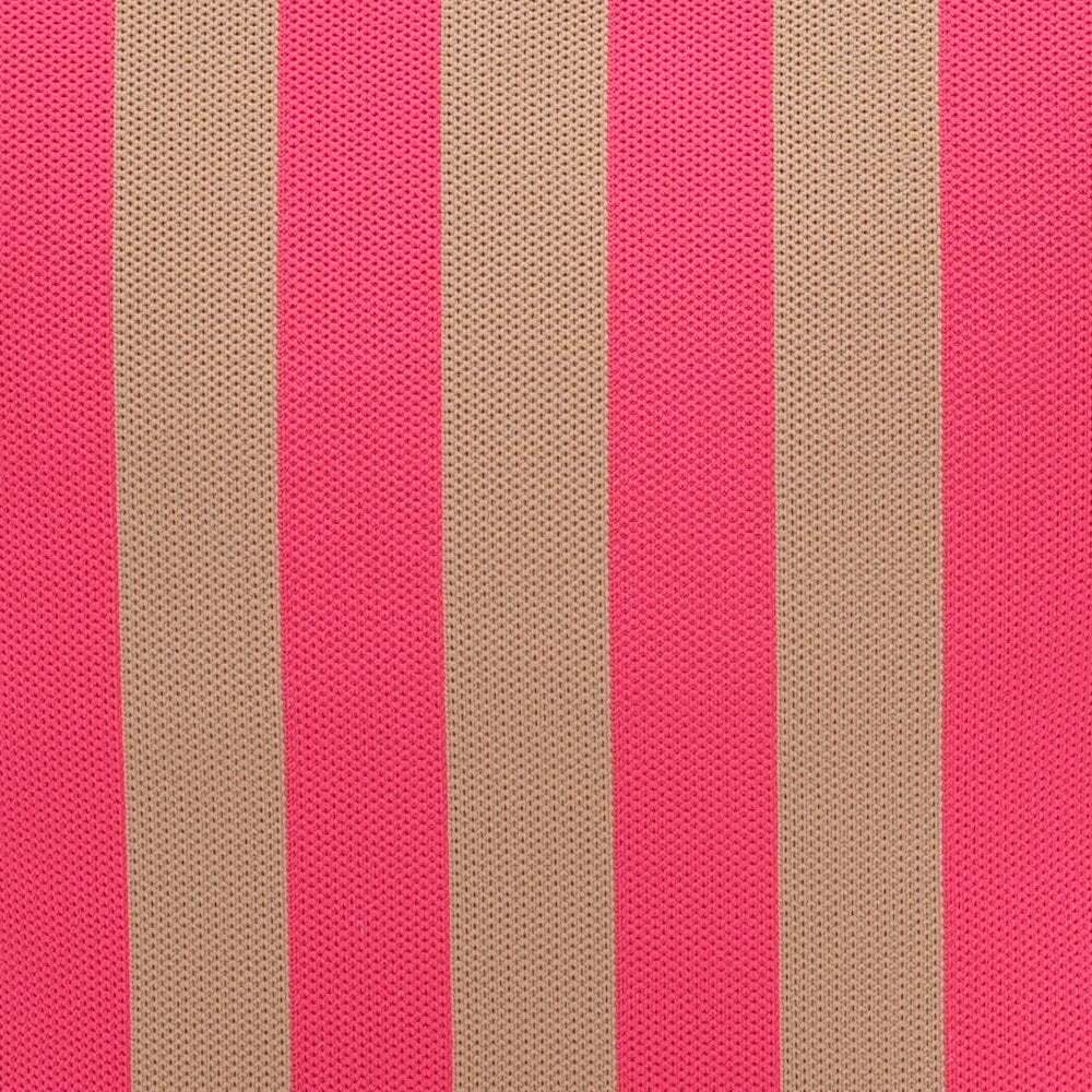Dit is een praktische en stijlvolle boodschappentas. De tas heeft een opvallend gestreept patroon in roze en beige tinten, wat hem een modieuze uitstraling geeft. De handgrepen in een neutrale kleur maken de tas gemakkelijk te dragen. Deze tas is ideaal voor het doen van je dagelijkse boodschappen, maar kan ook goed gebruikt worden als stijlvolle accessoire om je outfit mee af te maken.